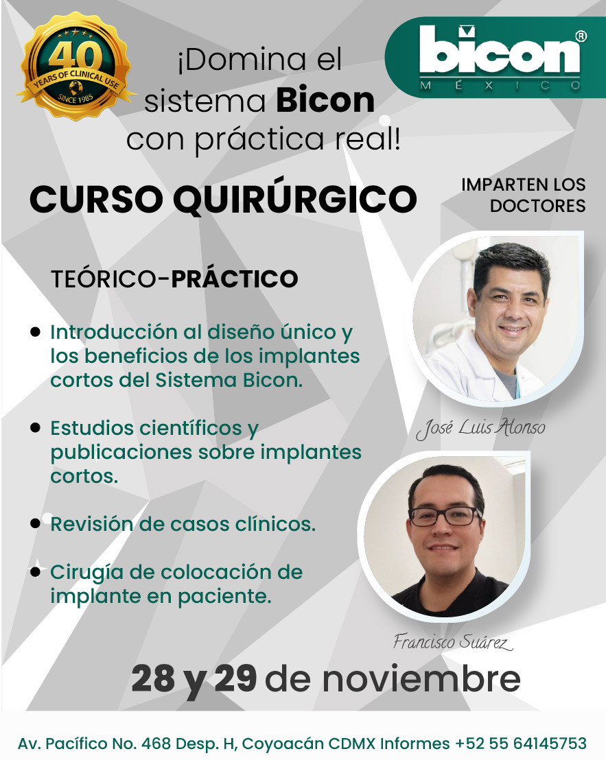 CURSO TÉCNICAS QUIRÚRGICAS Y PROTÉSICAS DEL SISTEMA DE IMPLANTES DENTALES BICON.